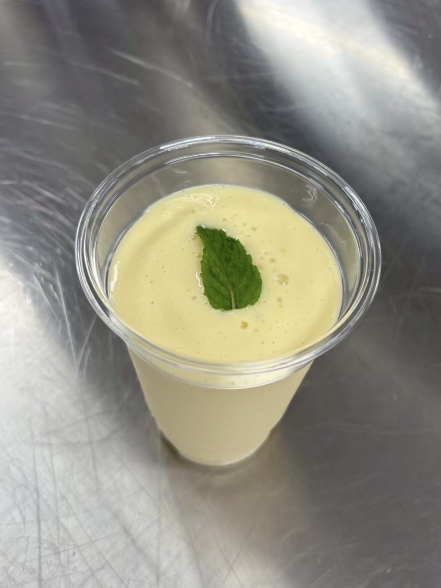 1ミキサー容器に全ての材料を入れ、氷がほとんどなくなるまで撹拌する。