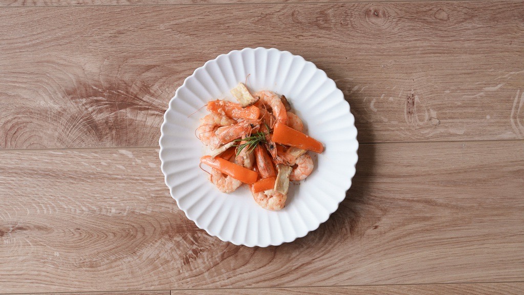 1エビの頭以外の殻と背ワタを取り、キッチンペーパーで水気をきる。