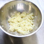 1①じゃが芋は皮をむき、一口大の角切りにしてゆで、aで下味をつけ、軽くつぶす。