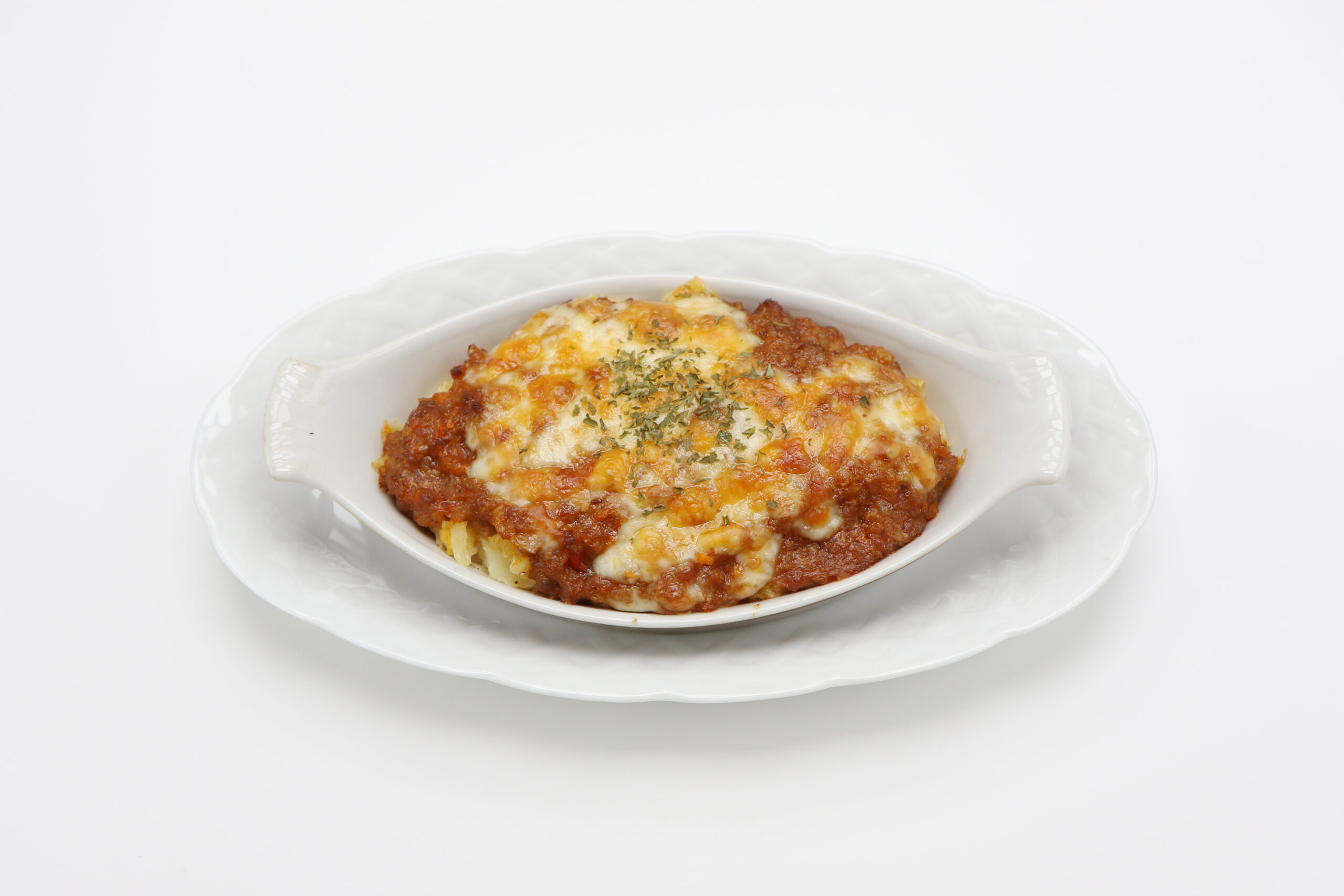 4④耐熱皿に①、③、チーズの順に重ね入れ、190℃のオーブンで10分焼く。パセリをふる。