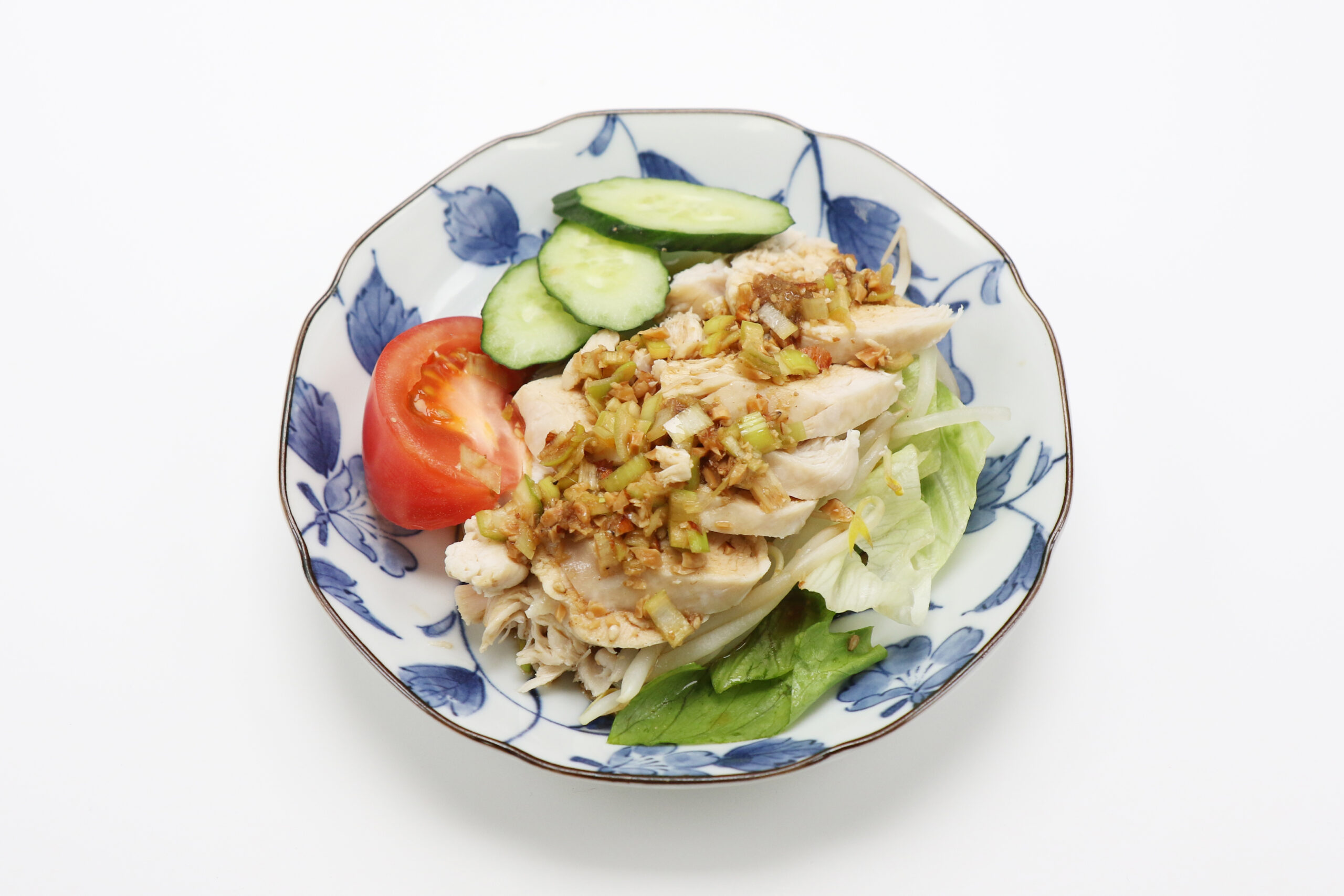 1①鶏肉は☆で下味をつけ、真空パックにしてスチコンで40分蒸し、そのままさます。