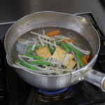 糸こんにゃくは食べやすい長さに切り、それぞれゆでる。もやしもゆでる。