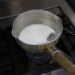 2②鍋に牛乳を入れて火にかけ、沸騰したらほうじ茶を加え、茶の味が出たら取り出す