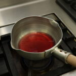 2②鍋にぶどうジュースと水を入れて温め、①と砂糖を加えてとかす。火からおろして粗熱をとる