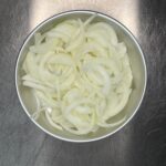 1玉ねぎを下処理して3〜5mmの幅で切る。
