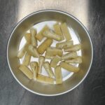 2油揚げっを画像のような短冊切りにする。