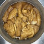 4鍋にBを入れ煮立てる。そこに油揚げを加え落とし蓋をし、弱めの中火で10分間煮詰める。その後火を切り、冷ます。